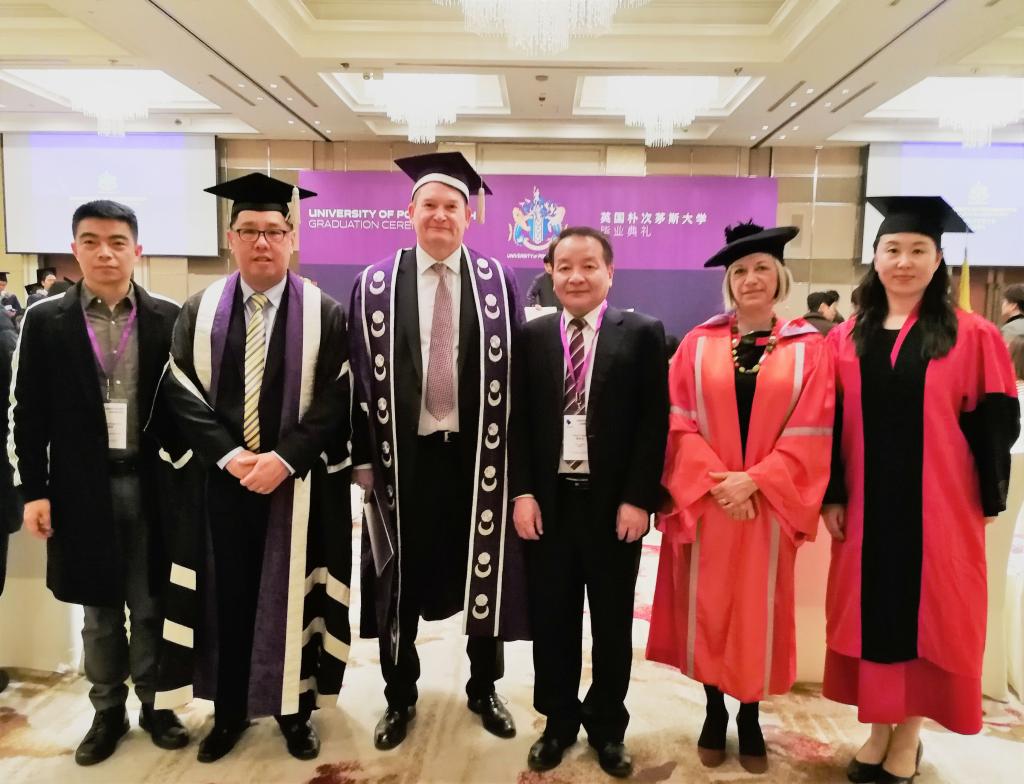 On January 20th, 2019, the Sixth Graduation Ceremony of University of Portsmouth (Chinese Campus) was held in Shanghai. GDUFS Vice President Chen Linhan, at invitation, attended the Ceremony with the Associate Dean of International College Liu Tianmiao, and the Vice Secretary of the general party branch of International College Shen Dongmiao.