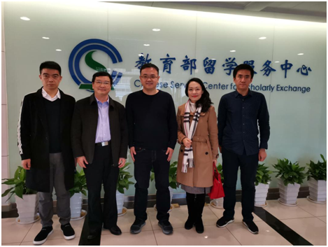 On December 25th, 2018, led by the Vice President Chen Linhan, the delegation including the Director of the International Office Ke Xiaohua, the Dean of the International College Liang Xuehong, and the Associate Dean Liu Tianmao visited the Chinese Service Center for Scholarly Exchange (hereinafter referred to as CSCSE) of the Ministry of Education and conducted research.