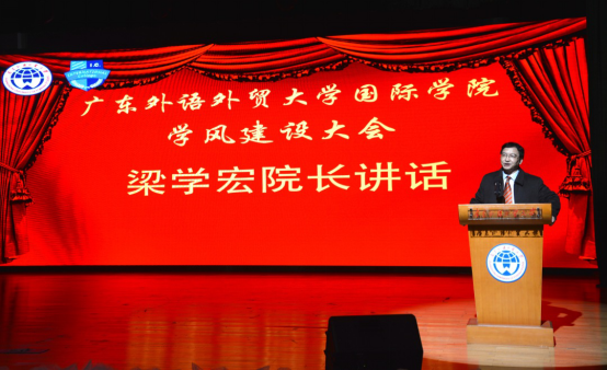 At the beginning of the event, the dean Liang Xuehong gave a speech to encourage building up the academic atmosphere . The dean introduced the new administrative and party leadership of the International College, and expressed the determination to continue making efforts to lead the International College to a new height. And then, the dean made positive comments on the learning attitude of most of the students since the start of the new term, but at the same time pointed out some of the negative behaviors of some students, hoping that they could correct their mistakes and do better in the rest of the term. Lastly, the dean encouraged the students with fours words: gratefulness, diligence, endurance, and discipline, wishing the students to achieve greatness in their academic journey.