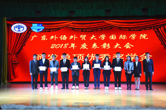 After the speech, the 2018 Commendation Conference began. The secretary of the general party branch of the International College announced the commendations for the academic year of the 2017-2018. The appraisal of this academic year ended in November 2018, and 83 excellent students were awarded scholarships. 7 students were awarded the first prize scholarship, 11 were awarded the second prize scholarship, and 15 were awarded third prize scholarship, 10 were awarded scholarship of the college, 8 were awarded scholarship for excellent social work, 5 were awarded excellent prize for performance in cultural and sports events. In this academic year, 27 were awarded freshmen scholarship, 4 were awarded the title of model of three-good students, 24 were awarded the title of the “top-three student”, 10 were awarded the title of excellent student, 5 were awarded excellent students in cultural and sports events.