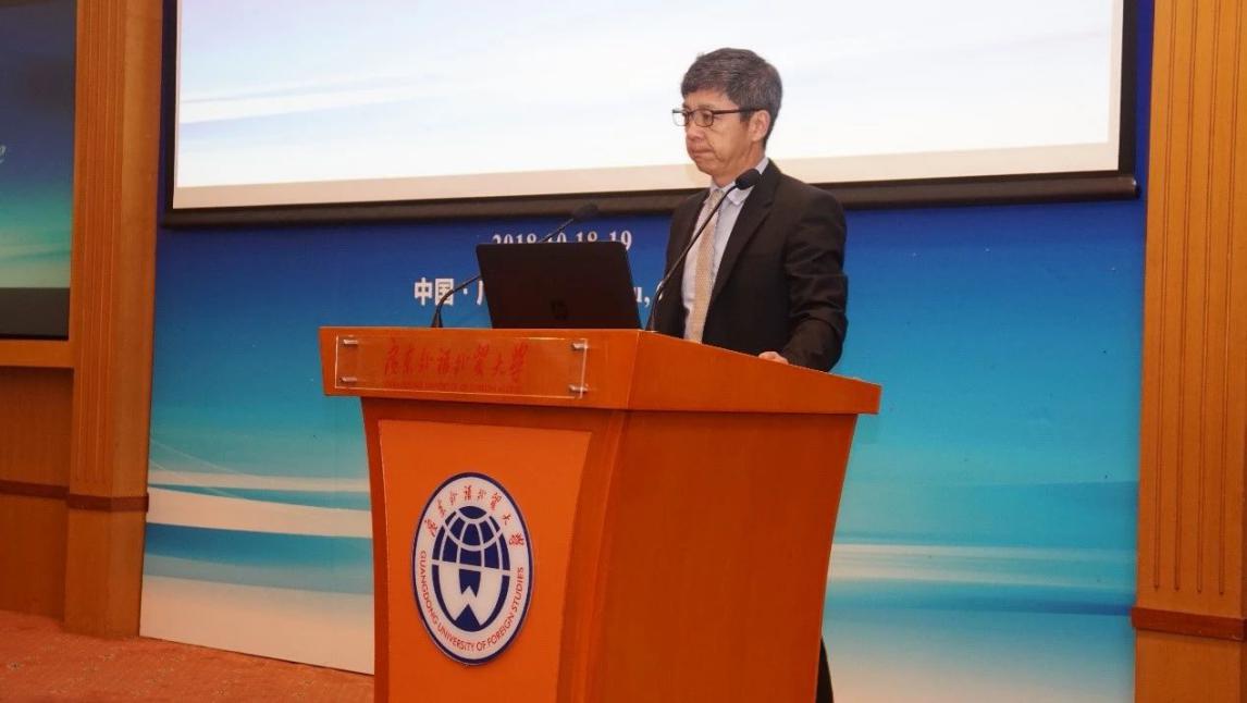 On behalf of GDUFS, Sui Guangjun extended a warm welcome to all the guests home and abroad. He shared the experience in educating talents on international level from three aspects based on the practice of education internationalization of GDUFS. First is to build high-level international cooperation platforms to promote the in-depth cooperation with famous universities and institutes, giving full play to the advantage of being a partner of the UN Extension Plan for Educating High-Level Translation Talents, having the permanent seat in the secretariat of WITTA and the international network of the Asian University Presidents Forum and China-Russia University Alliance of Economics to participate in the famous international education organizations such as NAFSA, and to conduct multilateral international cooperation on education. Second is to build a high-level education system for international talents, taking on the task of nurturing global citizens with international view, the knowledge of international rules, and global competitiveness and the ability to cooperate with a sense of social responsibility. Third is to promote high-level international exchange and cooperation, and set up a scholarship council for overseas studies and build the “university-school” dual supporting system, expanding the channels for students to go overseas for studies and build a supporting system of overseas development for students.