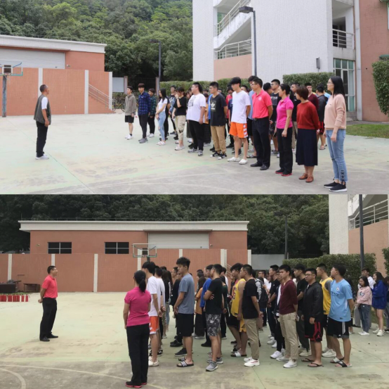 At 3pm, the drill started, and smoke came out of the dormitory. Led by the relevant personnel, the students were orderly evacuated from the dormitory to the basketball court while covering their nose and mouth with a wet towel.